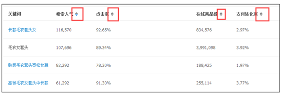 比如,我们根据店铺的实际情况,确定了三个备选词:毛衣女加厚 毛衣女宽松 毛衣女套头,那么我们就去判断一下,哪个词会比较好。