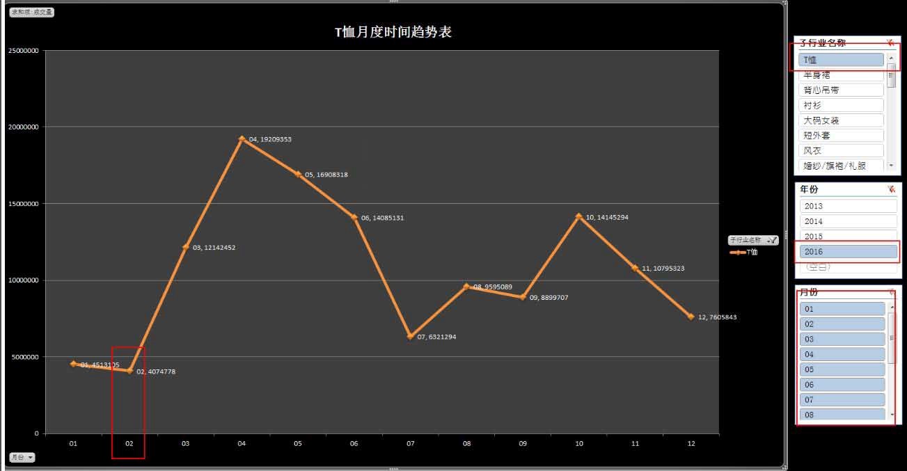 我们可以在表格中分析4年女装类目下,哪个品类是在增长,哪个品类是在萎缩!我们只要找到在每年增长的品类做主打,其他品类做辅助。这就是跟这市场趋势的脚步走,而不是盲目的选择类目,那就是我们分析市场的目的!